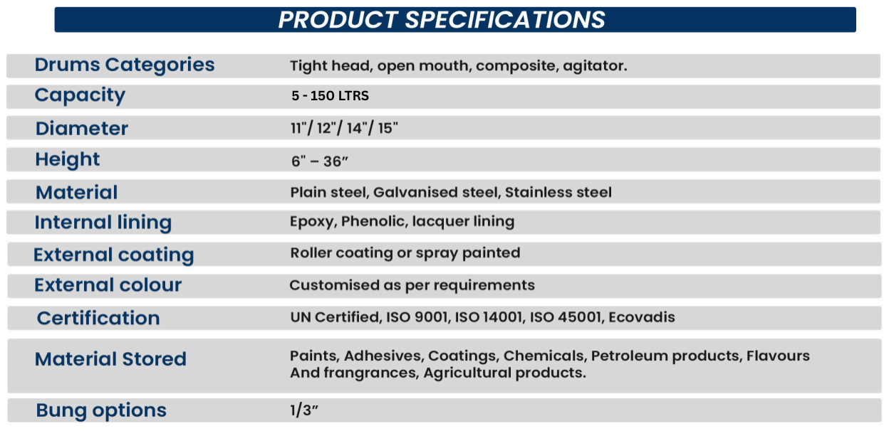 Ebullient Packaging has been manufacturing steel drums for over 20 years and is specialized in producing a variety of highly complicated drums and barrels.